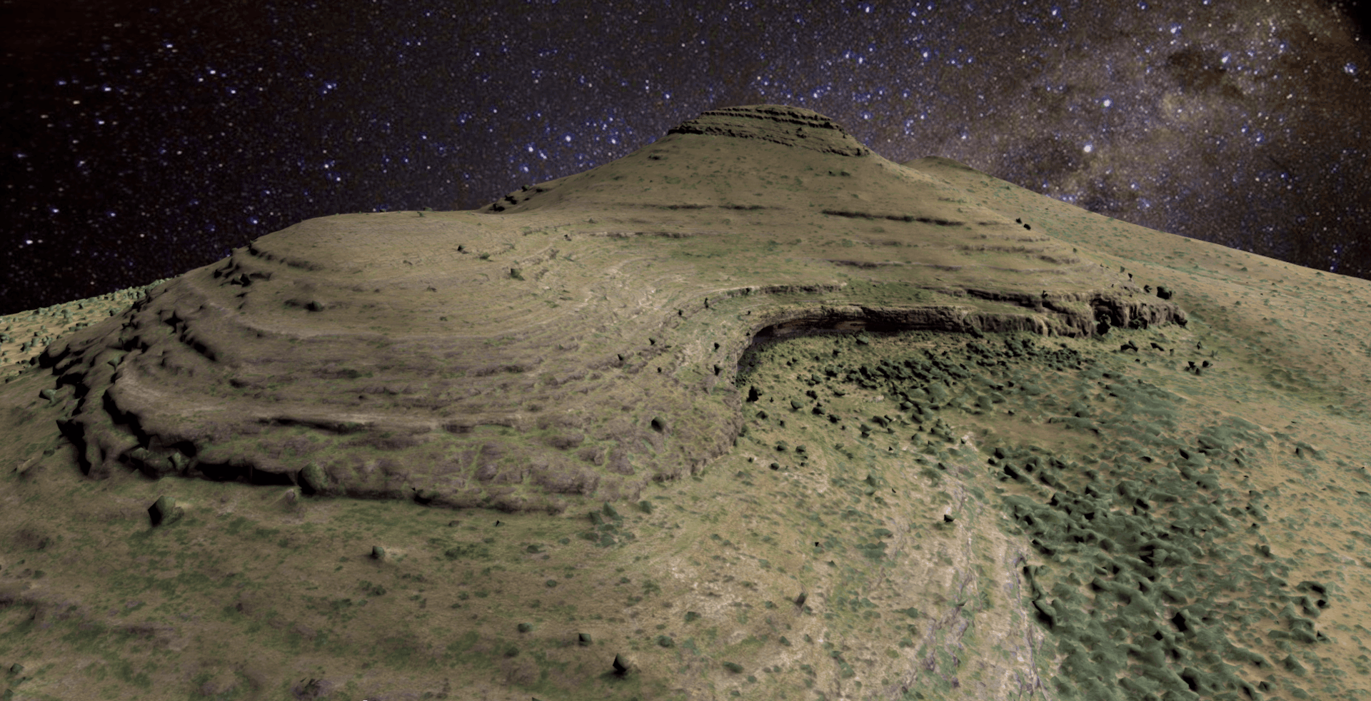 A 3D rendering of Ga-Mohana Hill in South Africa, a sacred and important heritage site.