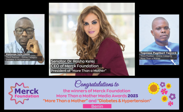Merck Foundation (www.Merck-Foundation.com), the philanthropic arm of Merck KGaA Germany announced the Winners of Merck Foundation Africa Media Recognition “More Than a Mother” Awards 2023 and “Diabetes and Hypertension” Awards 2023 from Benin. Winners from the rest of the Africa were also announced, in partnership with African First Ladies, the Ambassadors of Merck Foundation More Than a Mother. The awards ceremony was held via Videoconference to felicitate all the media award winners.