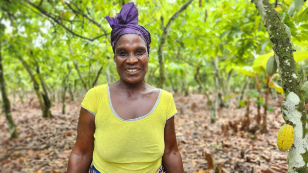 On a misty morning in rural Cote d’Ivoire, Delphine Papo deviates from her usual routine. Instead of trekking 4 kilometers through the fog to her cocoa plantation, she’s headed to a special class. The Watté United Brothers Cooperative (SCUW) is hosting a demonstration of cocoa tree fertilization, and Delphine is eager to attend.