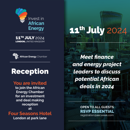 insert_link APO International The African Energy Chamber (AEC) to Host Invest in African Energy Reception in London on 11 July [[{"value":"The African Energy Chamber (AEC) – the voice of the African energy sector – will host a reception in London on 11 July 2024. Serving as a prelude to the African Energy Week (AEW): Invest in African Energy conference - taking place later this year in Cape Town -, the reception will connect foreign investors with African project opportunities. In line with the AEW: Invest in African Energy (www.AECWeek.com) mandate […] today12 June, 2024