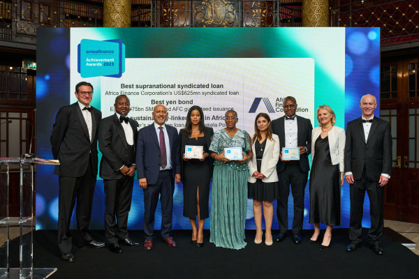 insert_link APO International Africa Finance Corporation (AFC) Receives Top Accolades at Europe, Middle East, and Africa (EMEA) Finance Achievement Awards [[{"value":"Africa Finance Corporation (www.AfricaFC.org), the continent’s leading infrastructure solutions provider, received top accolades at the EMEA Finance Achievement Awards in London yesterday. AFC won “Most Innovative Bond” and the “Best Supranational Syndicated Loan,” a testament to the Corporation’s strong credit profile and solid track record in capital markets. "The Most Innovative Bond" accolade in the Debt Capital Markets category recognised AFC’s pioneering JPY 75 billion Samurai Bond Guarantee to […] today8 June, 2024
