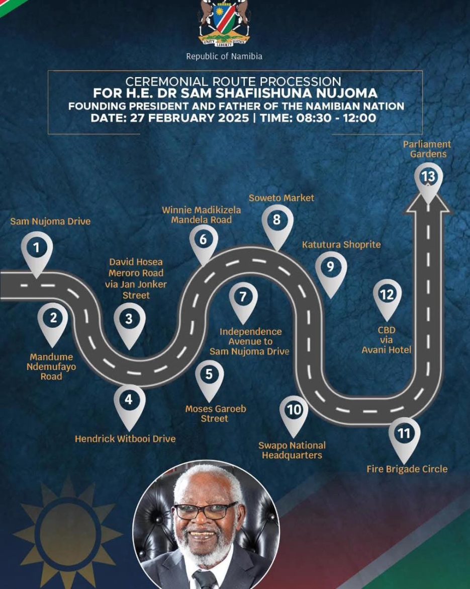 insert_link Oshiwambo Ovaleli voilyolongo ya Africa va yooloka ota veya kefudiko lomukokoli Nujoma Minister yomauyelele no makwatafano opautechnolgy, Emma Theofelus onghela okwa yandja elombwelo kutya omitwe doilyolongo da yooloka oda koleka tadiuya oku kala poshivilo fudiko shomukokoli President Sam Nujoma. Okwati mokati kaavo ta vekeuya moshilongo omwa kwatelwa omupresident wa Angola, South Africa, Zimbabwe, na Ghana. Okwati ovafimanekwa vadja koilyolongo ngaashi Mozambique, Malawi, Tanzania, Finland, Cuba, oshoyo ko Sahrawi Arab Democratic Republic navo ova koleka yoo tava ka kala peholeko lomukokoli president Theofelus […] today26 February, 2025