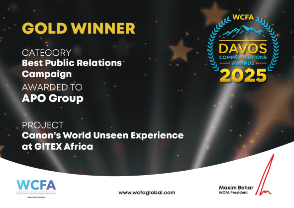 APO Group (www.APO-opa.com), the leading Pan-African communications and media relations consultancy, has earned two major accolades at the prestigious 2025 Davos Communications Awards held on 11 April  2025, in Davos, Switzerland: a Gold Award for Canon’s ‘World Unseen’ campaign at GITEX Africa and a Bronze Award for the ‘10 Years of Miraisha’ celebration. The Davos Communications Awards, presented by the World Communications Forum Association (WCFA), recognise exceptional communications firms, experts, and internal teams that have produced excellence and achieved quantifiable impact worldwide.