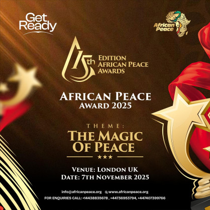 The African Peace Awards 2025 seeks to honor persons, institutions, organization, governments and others whose actions, and efforts have in one way improved or contributed to peace keeping and conflict management in Africa as well as improving the lives of Africans.