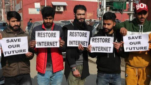 Kashmiri men protest against the internet blockade in Srinagar. Photograph: Farooq Khan/EPA via theguardian.com