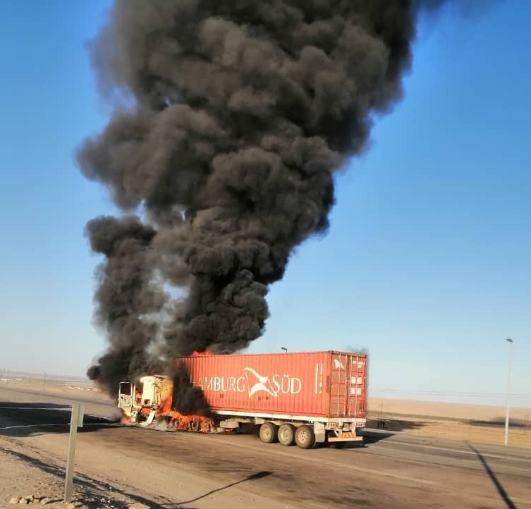 insert_link Uncategorized Driver unharmed as truck burns near Swakopmund By: Adolf Kaure A truck was damaged by fire on the B2 highway near Swakopmund on Tuesday afternoon. According to Warrant Officer Tuyenikelao Tashiya-Fernando from the Erongo police, the 28-year-old driver of the truck did not sustain any injuries. “The driver, who was driving alone from Walvis Bay to Windhoek, smelled electrical burning as he was approaching the Swakopmund roadblock. He applied the brakes to stop the truck, but […] today14 May, 2025