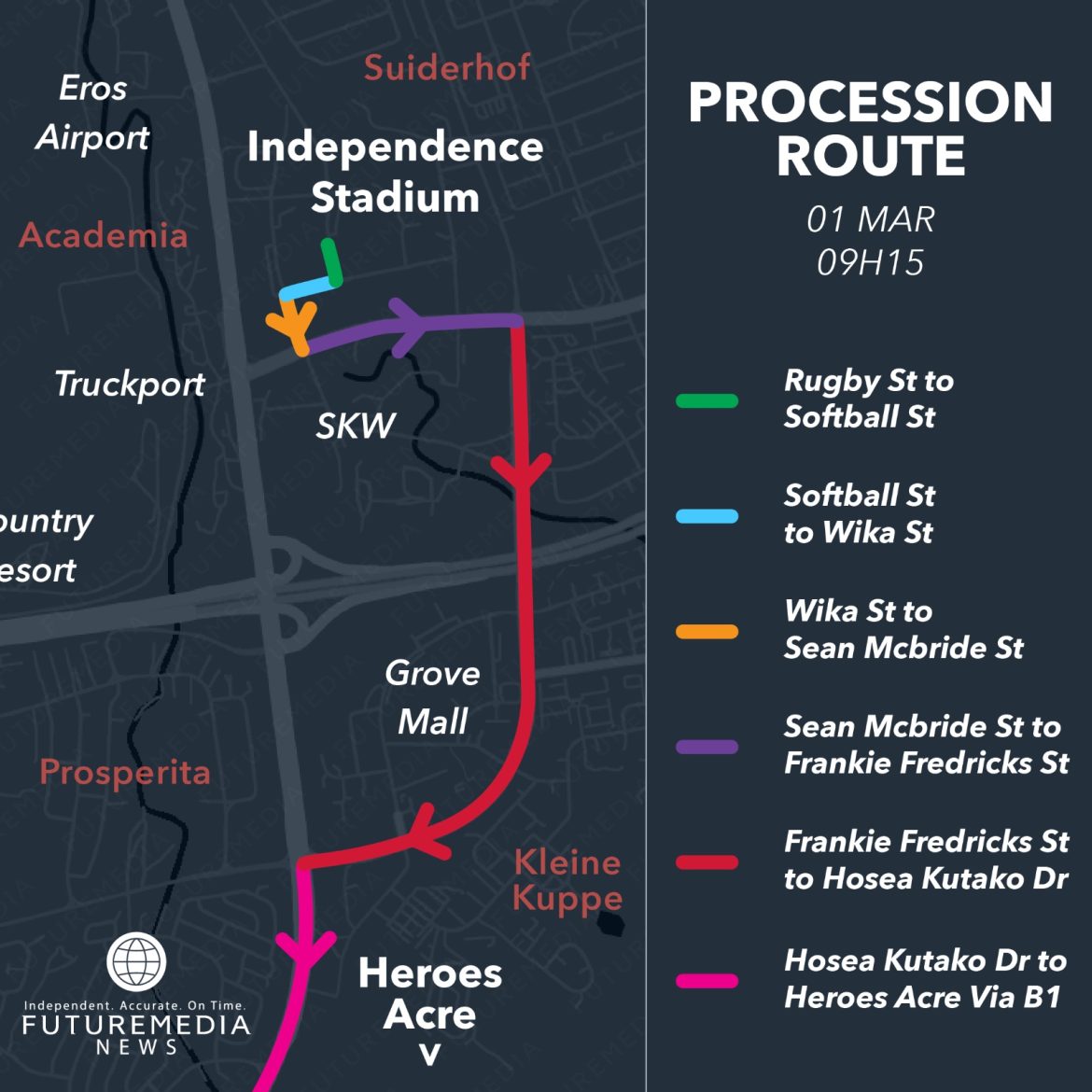 insert_link Dr. Sam Nujoma Nkene olutu lomukokoli talu endithwa okuya koshituthi hupulutho ongula kokapale ka Independence Stadium okuza ko Parliament Gardens today27 February, 2025