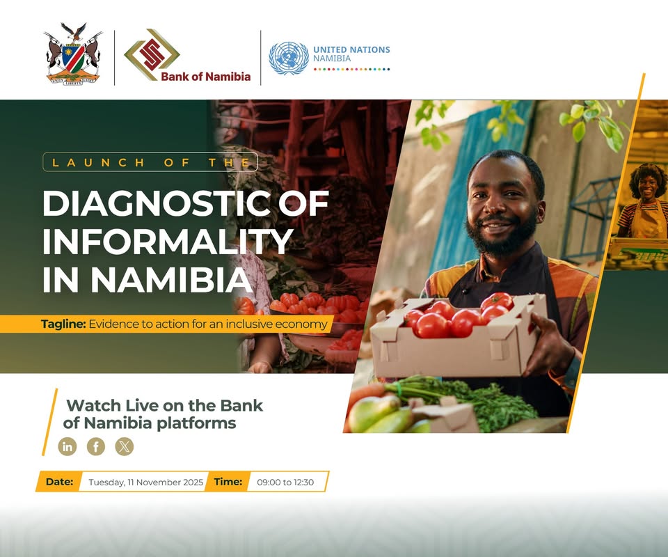 insert_link Business / Economics Report Targets Growth in Informal Economy A new report launched in Windhoek aims to enhance understanding of the informal economy and support inclusive growth. The Diagnostic Report on Informality, developed by the Bank of Namibia with government ministries and the UN, highlights key challenges and policy solutions for a sector that sustains most citizens, particularly women and youth. Dr Michael Humavindu is the Chairperson of the National Working Group on Informality and Executive Director in the […] today12 November, 2025